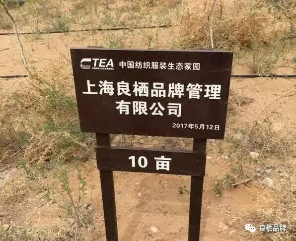 上海良栖品牌管理有限公司捐赠中国纺织工业企业管理协会在内蒙古阿拉善沙漠主办的中国纺织服装锁边生态林10亩于2017年5月12日在内蒙古阿拉善沙漠正式启动。