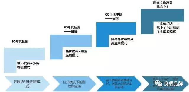 当前消费者的购物流程体现为知晓、搜索、购买、分享拥有体验这几个阶段。因此未来的服装品牌门店运营模式趋向肯定是“实体门店”+线上电商(PC+移动)的全渠道模式。