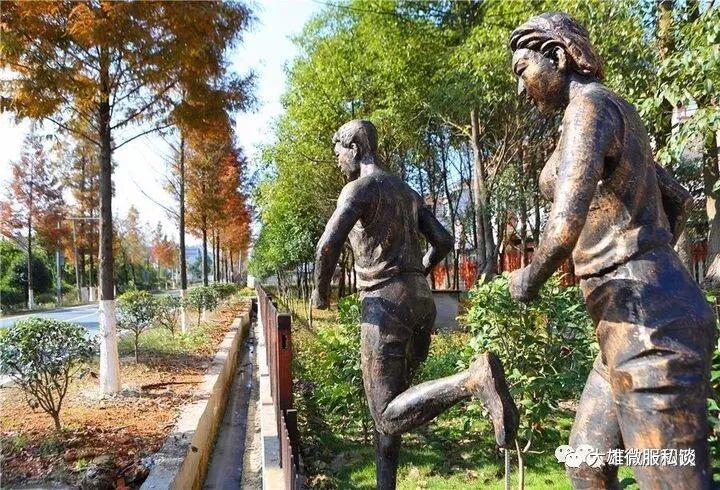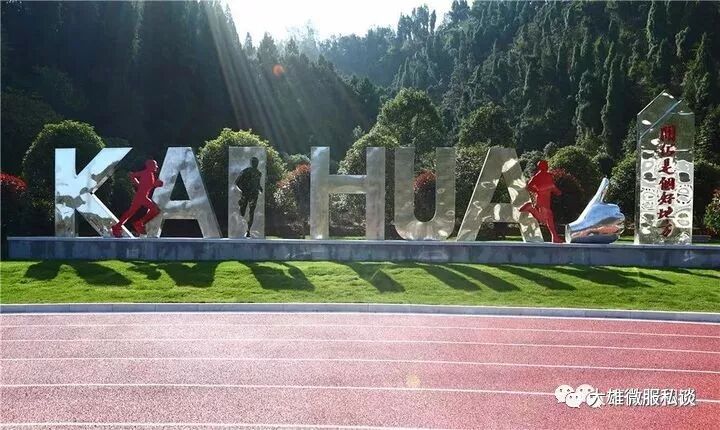 顺路而下,一行“开化”的拼音字母竖立在草坪上,两个作跑步姿势的红色雕塑点缀其中。在这里巧遇老同学苏庄卫生院院长王卫军先生作为医疗点蹲点;沿路而行,路旁水杉逐渐被银杏代替。这个季节的银杏开启了一年中最华丽的篇章,阳光的照耀下,变成了灿灿的金色,在“开化蓝”的映衬下,显得那样的和谐般配。