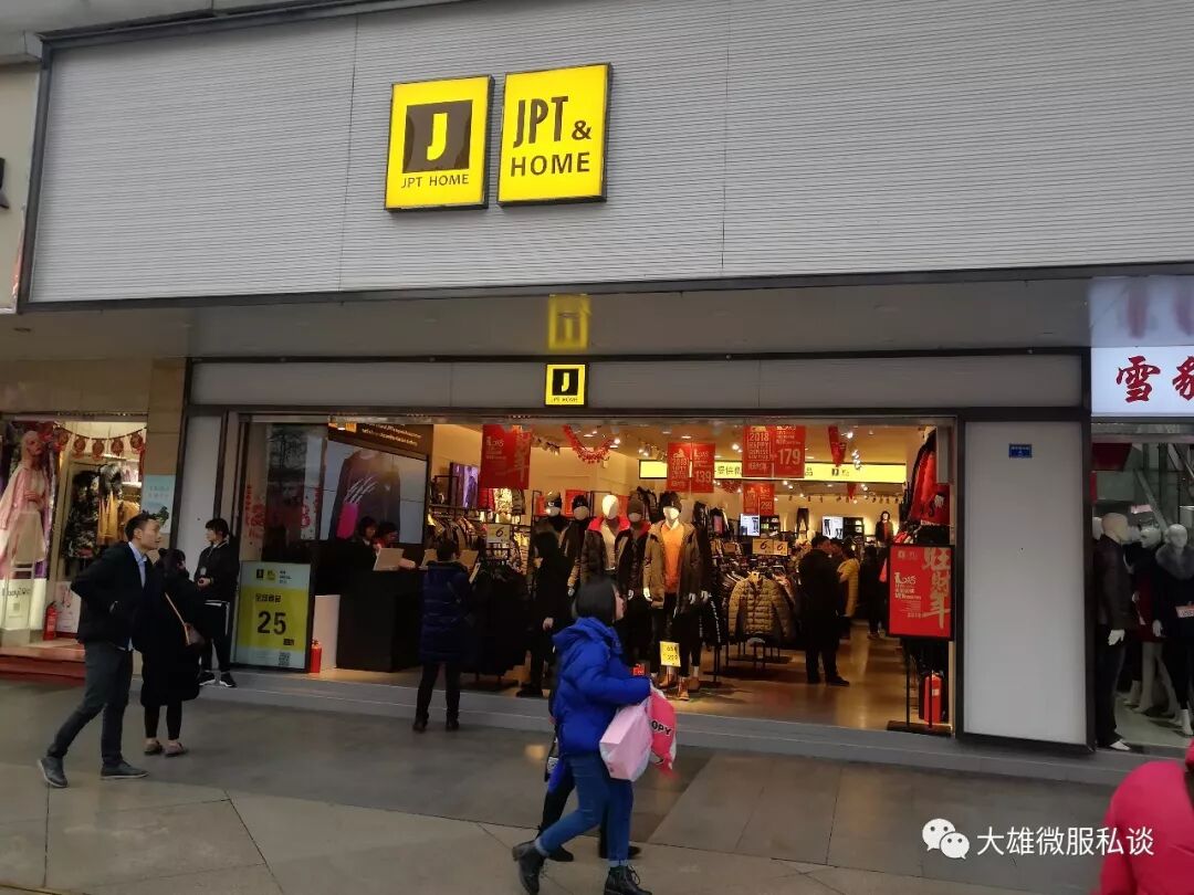JPT品牌这二年快速在西南、华中市场冒起,类KM的快时尚男装,说透了就是卖手+渠道的快速推进,小规模实现局部市场做大可以期许,但面向全国市场依然任重而道远;