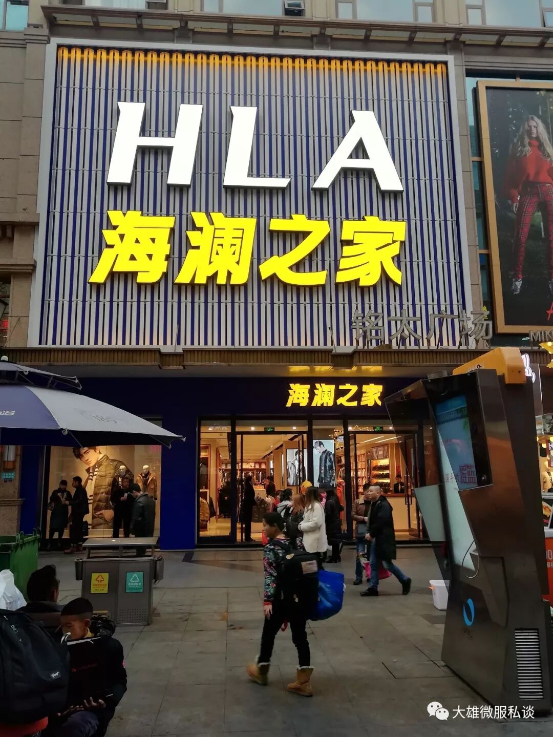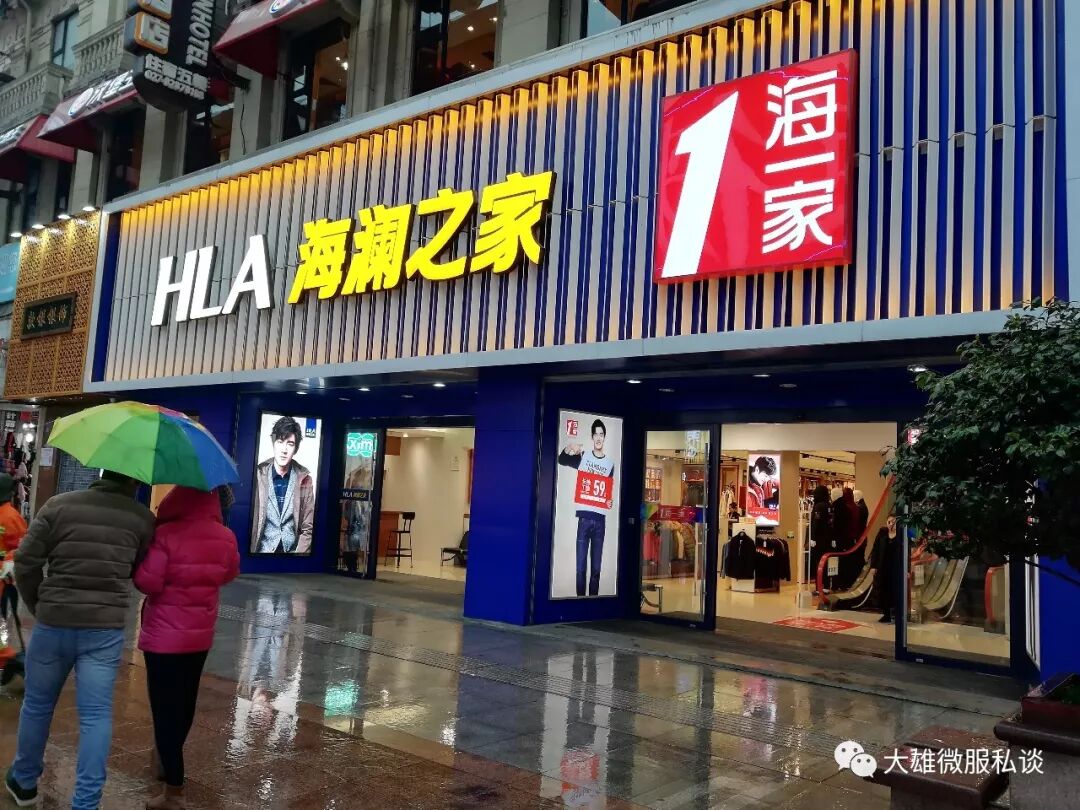 在绵阳步行街拍到的店铺布局生态,海澜之家和大不山男装、海男男装在一起,这种店铺布局生态在四川、重庆成为常态,传递出什么信号呢?品牌的存在就是品牌,是无法被模仿的,但如果品牌的存在渠道、产品品牌主无法自己把握的,被其他品牌快速迭代或替代也就非常正常的了;