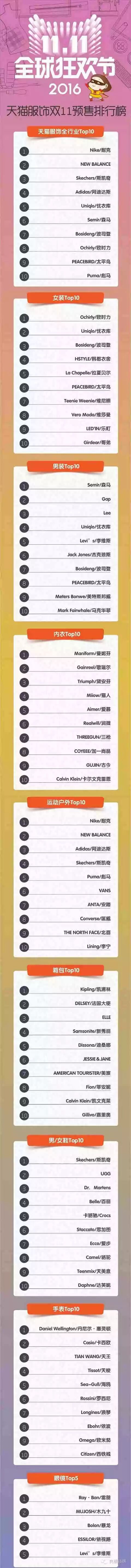 从八大细分行业上榜品牌来看:1)线下主力品牌越来越成为双11主角,耐克、阿迪、优衣库、欧时力、周大福、天梭等皆有出色成绩。2)服饰行业国际品牌以及个性化品牌预售发力威猛,消费者对于Gap、Lee、Levi’s、UGG、Dr.Martens等国际品牌提供的尖货更愿意买单。