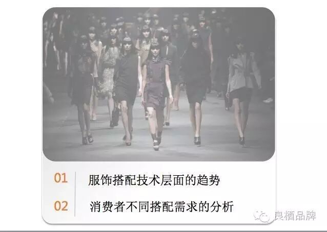 还有就是针对这个用在成长的消费者的话呢还有一种方式就是我们把它作为一种搭配的一个趋势话题,然后呢丰富我们的品牌内容。品牌内容的营销这个部分。那这个对于长线而言也是非常有效果的品牌的用一些流行搭配趋势话题作为营销。目前依然会有很多消费者来追随。那必定我们的消费者的审美层级比较多,处在成长的消费群呢还是很庞大的。嗯当然了假如说你的消费群已经成熟了,他们已经不需要跟你学搭配了那么这些方法就不要用了我们就来关注一下下面我们应该针对这个成熟的消费群体,如何运用服饰搭配。然后来获得商业的一个价值。