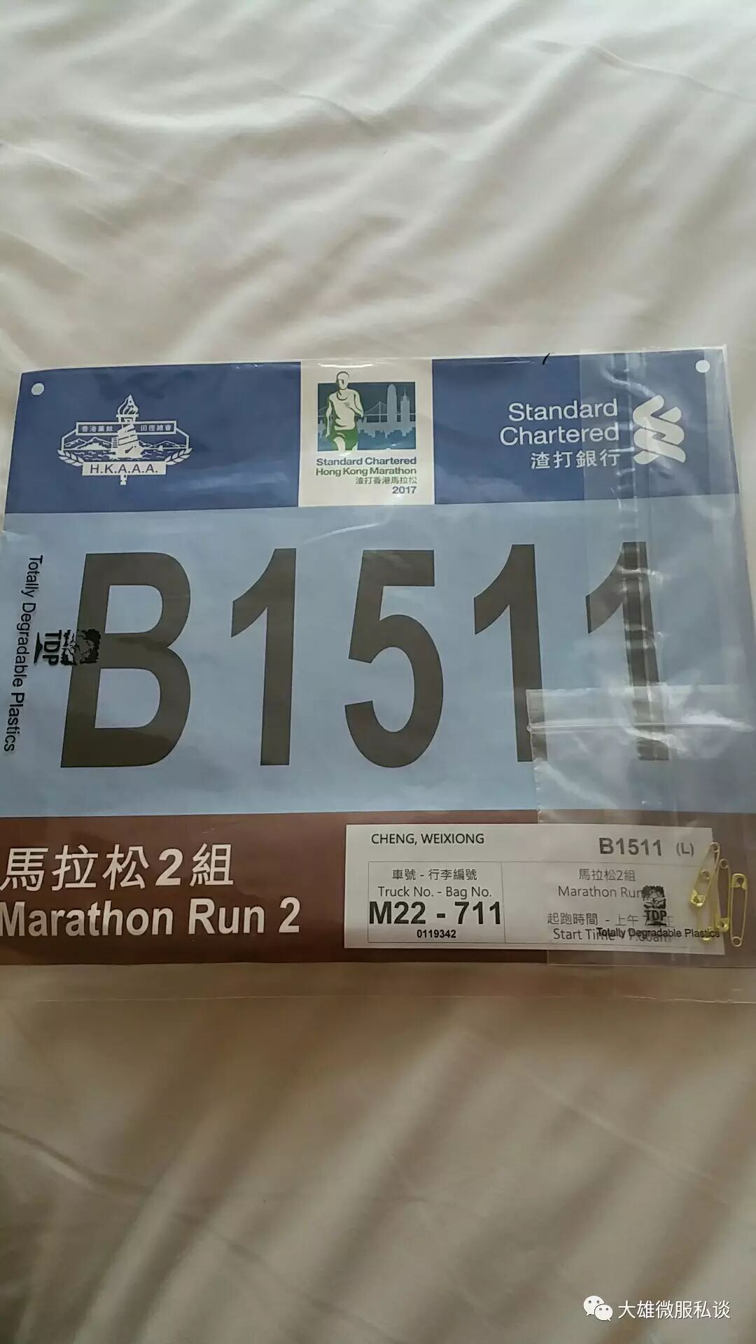 非常有缘的是港马参赛号:B1511,似乎预示我参加的第15个马拉松,第一次作为“海外选手”,第一次准备从港马开始跑向世界;对于香港马拉松赛道之虐一直有所耳闻,但到底多虐还不清楚,故2017香港马拉松完赛目标设定时间为05:00;虽然在中国自己的领土成为所谓海外选手参加港马有些不爽,但也无可奈何?领导都不管,我等屁民拿高度干啥呢?!只是觉得香港一国两制之后,国家认同、民族认同等教育不够,显得有些本岛意识,对于说普通话的国内兄弟姐们不是很尊重,反而说点“鸟语”的更显尊重,本岛年轻人非常骄傲,中老年人很热情谦卑;领取装备还是动作比较快的,但没有太多的体验,马拉松体验国内很多城市比香港做的更好;