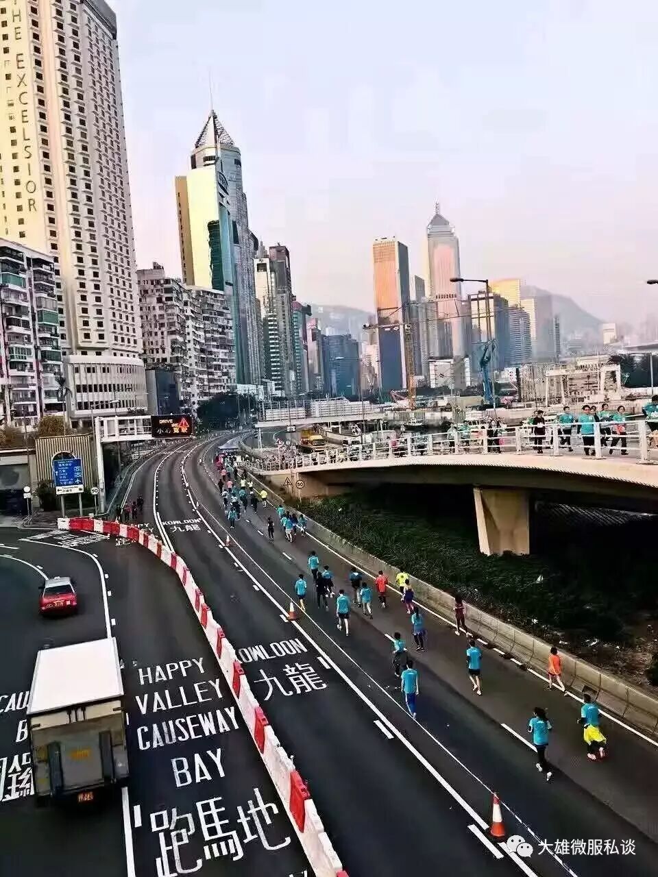通过携程定的酒店离港马起点弥敦道很近,走路不到10分钟,早上5点半起床,到起点6点左右,本地选手6:15还没有出发,等本地选手6:15出发之后,就是海外选手马拉松1组6:30出发,我属于马拉松2组早上7:00出发;在现场感受不到在内地马拉松比赛那种如临大敌的安全防范,港马的安全防范好像只有保安参与,没有内地有的马拉松比赛警察是三步一岗五步一哨,就是一民众的体育狂欢,确实没必要过分紧张,有时正确疏导比可以堵更有效;起点起跑也没有内地马拉松这领导那赞助商的废话发言,跑步就是跑步,时间到起跑就是了,非常简单的事情;