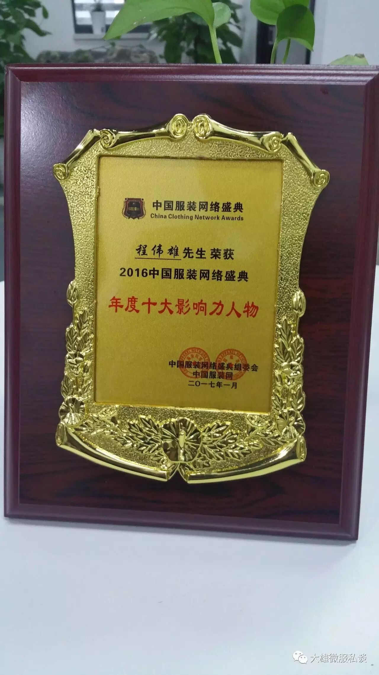 2016年度中国服装行业十大影响力人物荣誉奖牌近日已收悉,15天的投票历历在目,感谢所有支持我的新老朋友们,有你们的支持,我才能走的更远!更踏实!