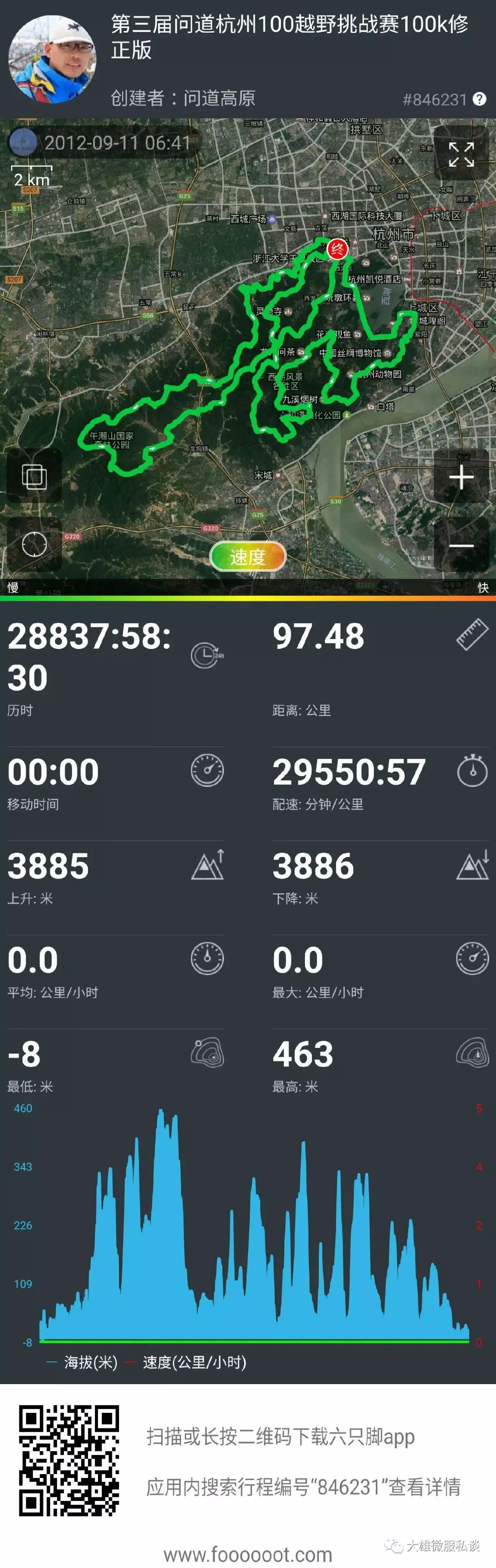 参与越野100公里的念头是在去年10月30日衡山越野50公里完赛之后才有的念头,故去年在国内越野大神谢樟荣先生推荐下报名参加杭州问道越野100公里的赛事,但实际上没有做太多的准备,跑量依然是公里马拉松的跑量再增加50公里而已,月跑量仅仅只是200公里左右,没有练爬升,没有练力度,没有练夜跑,没有每周拉练30-50公里,只是在2月底到台州大雷山徒步,3月8日徒步38公里;