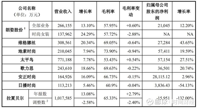时间财经查阅拉夏贝尔对上交所问询函的回复发现,除拉夏贝尔外,其余几家服装企业在2018年营收均出现不同程度的增长;归母净利润方面,拉夏贝尔更是唯一亏损企业。就此而言,公司2018年堪称“逆势亏损”。