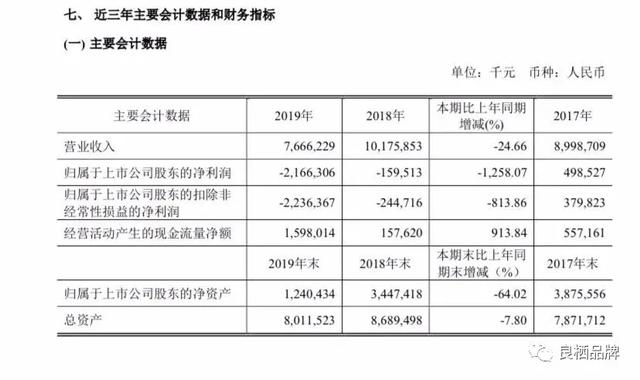 6月29日晚,拉夏贝尔(603157.SH,06116.HK)终于公布了其2019年年报,数据显示,2019年度,公司实现营业收入约76.66亿元,同比上年的101.76亿元下降24.66%;实现归属于上市公司股东的净利润-21.66亿元,较上年同期增加亏损近20亿元。总资产由2018年的86.89亿元下滑到80.12亿元。