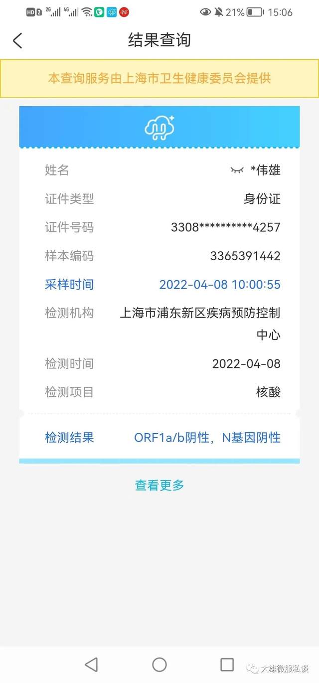 3月31日上午我、儿子、女儿检测报告已出阴性,下午接到疾控通知确诊阳性(这是社区居委不负责任的态度,仅仅凭借一次异常就上报疾控),但下午我太太收到健康云3月30日单人单管核酸检测报告阴性;